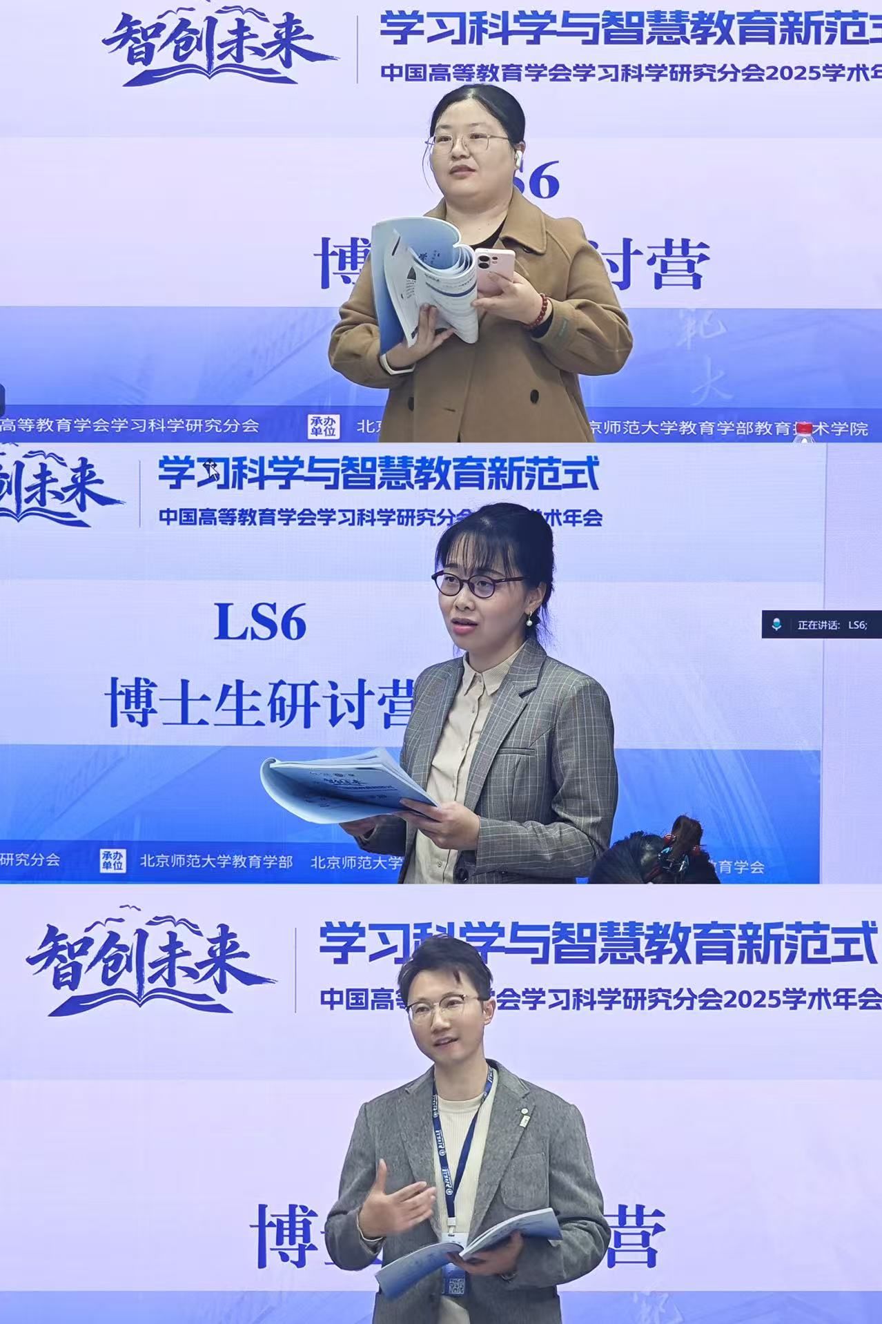 学习科学促进教育智慧发展,博士论坛彰显学术创新锋芒。2025年10月18日,由中国高等教育学会学习科学研究分会主办的2025学术年会LS6博士生研讨营在北京师范大学后主楼2122顺利举行。作为本届学术年会的重要组成部分,LS6子会议面向博士生和广大青年学者征稿,共收到来自国内外知名高校的22篇论文,经过专家评审,最终录用并汇报高质量论文12篇。博士生研讨营由延安大学胡若楠老师主持,包括论文汇报和专题报告两个部分,并邀请到华中师范大学王涛副教授、江南大学的姚佳佳副教授和首都师范大学王梦倩老师担任点评嘉宾。