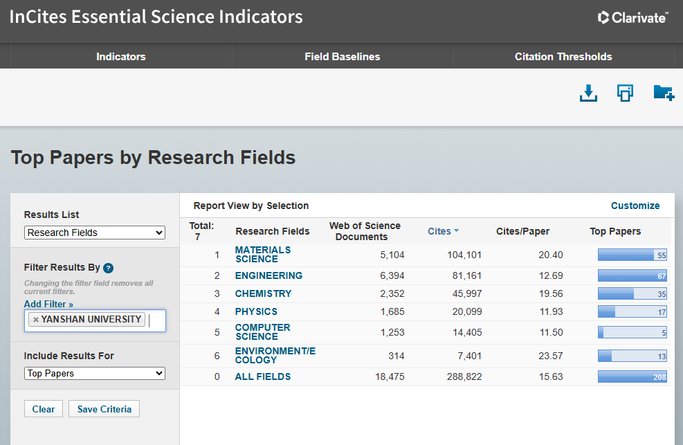 近日,科睿唯安(Clarivate)发布的最新一期基本科学指标数据库(ESI)数据显示,燕山大学物理学学科首次进入ESI全球排名前1%行列,标志着我校在基础学科领域的科研实力、学术创新能力与国际影响力取得重大突破。至此,燕山大学进入ESI全球前1%的学科总数增至6个。其中,工程学位居全球前1‰,形成了以工程学为引领,材料科学、化学、计算机科学、环境科学与生态学、物理学等多学科协同并进的发展格局。