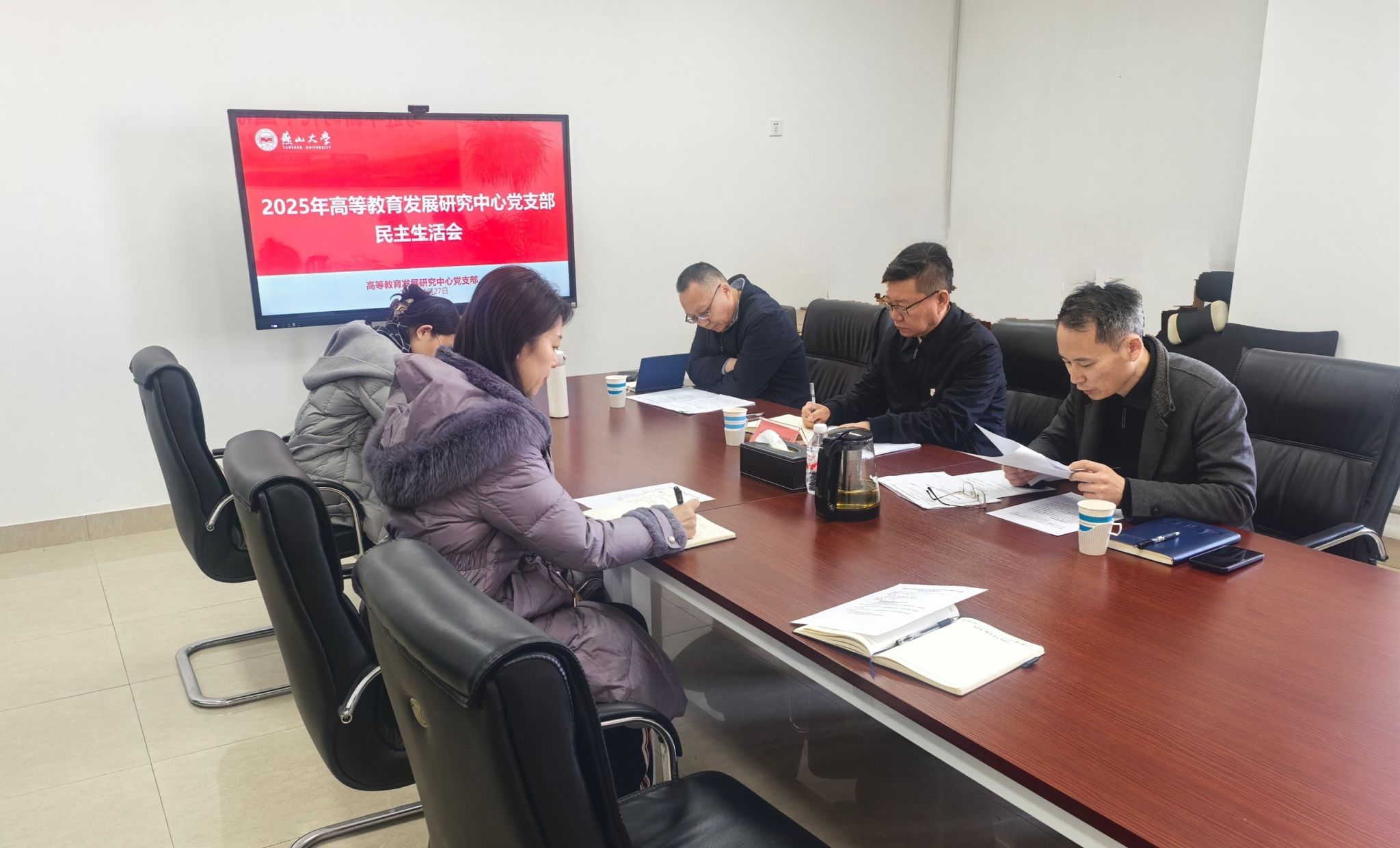 2月27日,高等教育发展研究中心召开2025年度民主生活会。校党委常委、副校长陈国强到会指导,中心全体党员参加会议。会议由党支部书记王培龙主持。