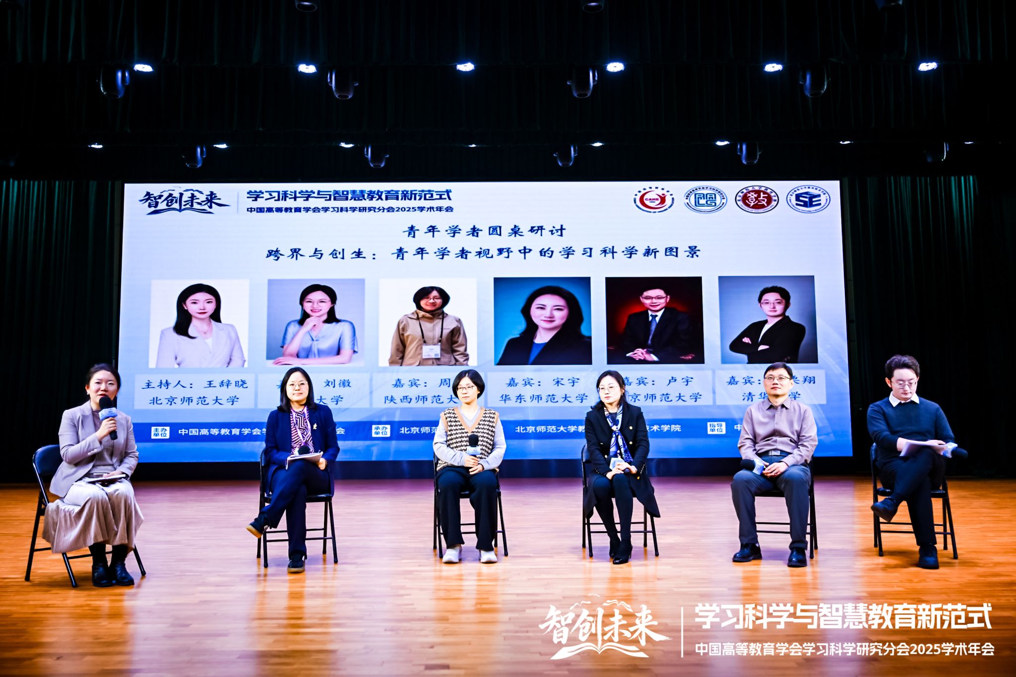 学习科学青年学者圆桌研讨由北京师范大学教育学部副教授王辞晓主持,嘉宾包括浙江大学课程与学习科学系副系主任刘徽教授、陕西师范大学教育学部周筠教授、华东师范大学上海智能教育研究院宋宇教授、北京师范大学教育技术学院副院长卢宇副教授和清华大学教育学院助理教授严栗翔。聚焦“青年学者视野中的学习科学新图景”主题,青年学者们分享了自己的研究领域和跨界经历,就人工智能时代研究范式创新与融合、人工智能在重塑教育研究和实践边界的过程中给青年学者带来的机遇和挑战等方面展开了讨论,并给出了各自认为在未来最有发展潜力的议题。