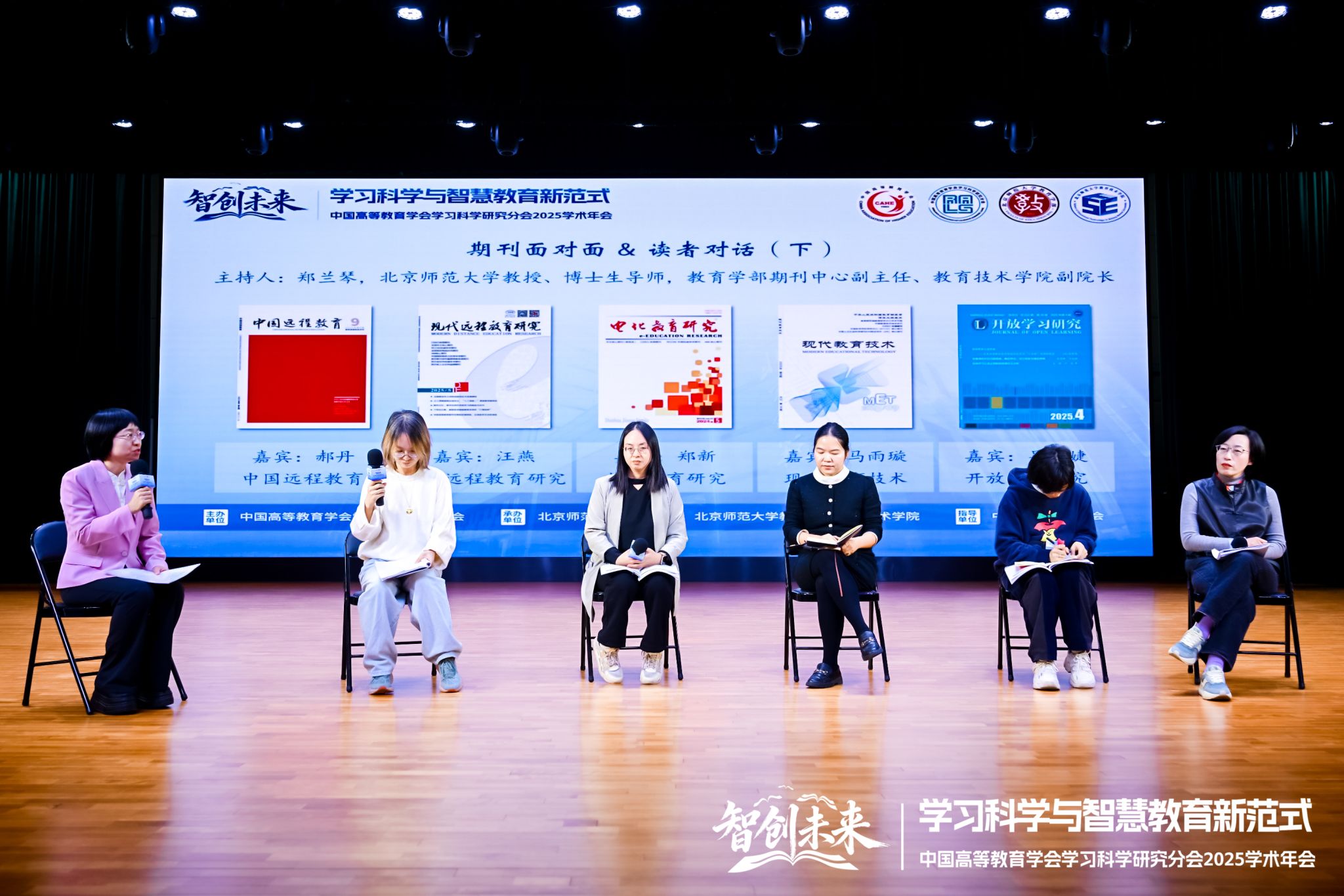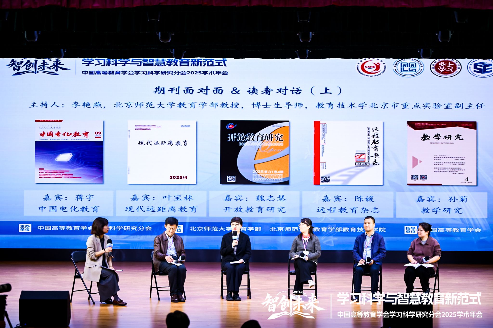 “期刊面对面&读者对话”专场活动邀请了国内多家教育类核心期刊主编与编辑代表:《中国电化教育》蒋宇、《现代远距离教育》叶宝林、《开放教育研究》魏志慧、《远程教育杂志》陈媛、《教学研究》孙菊、《中国远程教育》郝丹、《现代远程教育研究》汪燕、《电化教育研究》郑新、《现代教育技术》马雨璇、《开放学习研究》吴亚婕。活动分上下半场进行,由北京师范大学智慧学习研究院副院长李艳燕教授与教育技术学院副院长郑兰琴教授主持。嘉宾们围绕“AI辅助写作的学术诚信边界”、“AI署名与作者身份界定”与“出版模式创新与技术速度匹配”等核心议题展开深入讨论,为推动学习科学研究高质量发展注入了新的思考与动力。