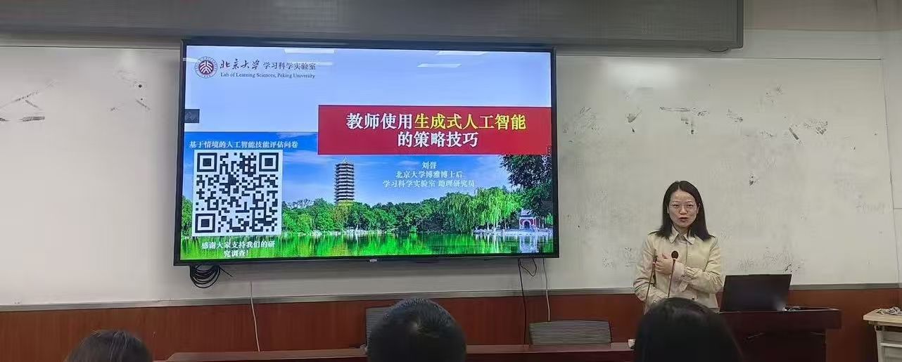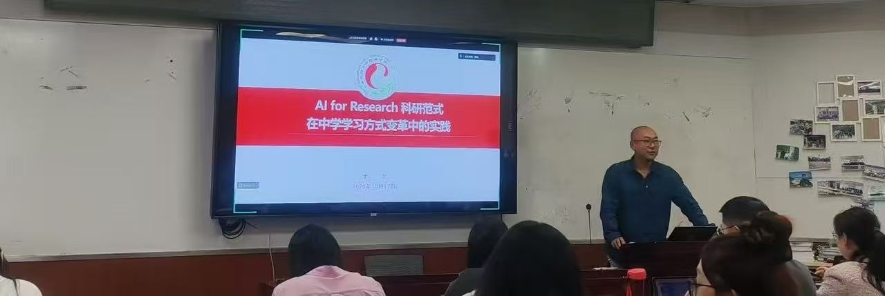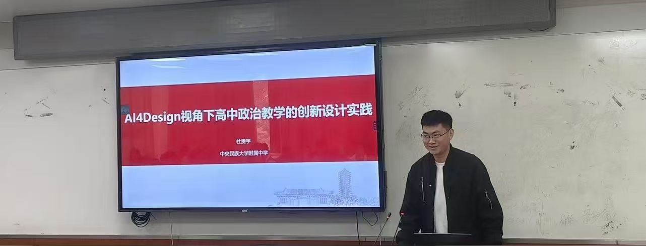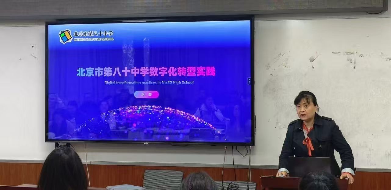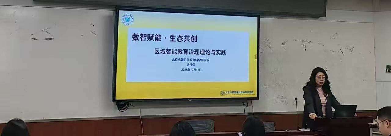 在特邀报告环节,朝阳区教科院综合教研部汤佳佩副主任分享了题为《区域智能教育治理理论与实践》的专题报告;中央民族大学附属中学名师于戈和杜贵宇老师分别分享了《AI4Design视角下的政治教学的创新和设计与实践》和《AI for research科研范式在中学学习方式变革中的实践》主题报告。