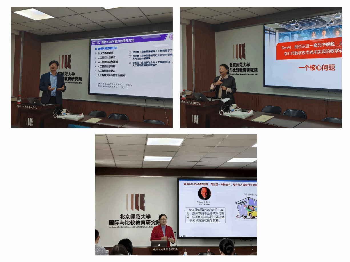 北京师范大学牛晓杰、山东大学李瑞琳、山东大学徐唱、山东大学崔依冉、上饶师范学院万昆、山东大学王晶心、山东大学叶沁心、上海师范大学吴旻瑜、华东师范大学吕雪坤、中国人民大学附属中学崔鹏、云南师范大学张晓姝等学者,围绕AI多智能体、数字素养、人机协同教学、跨学科学习、生成式人工智能(GAI)赋能教学等作研究报告。