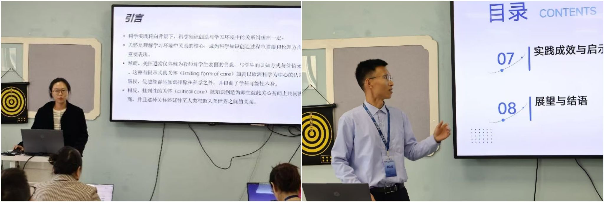 下半场的研究视角更趋多元化。山东师范大学尹敏娟与刘新阳老师的《小学生课堂举手“表里不一”现象的微观互动分析》,以独特的微观视角揭示了课堂师生互动的深层逻辑,充满新意且引人深思。山东师范大学张朝瑜的《小学科学建模教学案例研究》通过参与式观察深入追踪了两轮课堂教学,深入揭示了一线教师在建模观念认知和教学实践等方面的现实样态。瑞安市瑞祥实验学校的杨文雅老师分享了《“人道一点”:关怀塑造科学实验设计中的认知协商》,创新性地将关怀伦理引入科学教育,论证了关怀对于促进认知协商、消解人与世界对立的积极作用,为科学课堂注入了温暖的人文底色。最后,河北科技工程职业技术大学郭安团队分享了《学习科学视角下生成式人工智能赋能的课堂内容变革与学习动机激励策略研究》,分析了AI与课堂融合的机遇与挑战,并为构建技术适配、动机可持续的课堂新生态提出了策略建议。