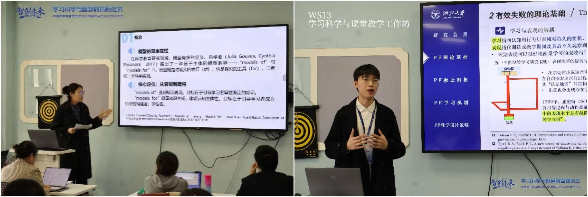 上半场的报告聚焦技术变革和教学范式的创新。上海青浦兰生学校的赵楠老师分享了《数字技术支持初中科学推理教学的实践探索》,展现了大科学视角下以数字技术支持课堂变革与学生素养发展的广阔前景。浙江省绍兴市教育教学研究院的俞英老师则从宏观视角出发,探讨了《数据驱动的教学问题诊断与决策》。紧接着,浙江大学的董博涵报告了《以“败”启智的教学:有效失败理论与设计》,详细介绍了国际前沿的“有效失败”教学理念,并倡导将课堂中的学生认知冲突转化为深度学习契机,引发了与会者的浓厚兴趣。杭州云谷学校的李明团队则分享了《技术赋能素养评价》,生动地展现了人工智能支持下素养评价的多元可能,云谷学校的创新实践也成为了现场讨论的热点。